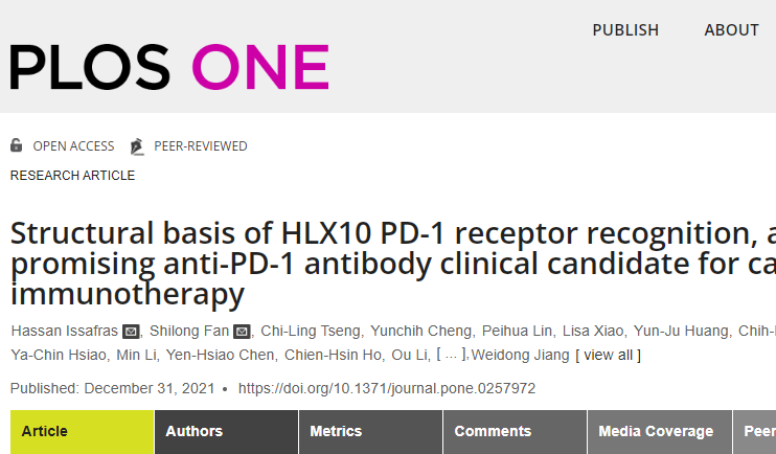 独特的抗原识别模式,z6尊龙时凯H药抗PD-1单抗临床前研究及结构分析发表于国际期刊PLOS ONE