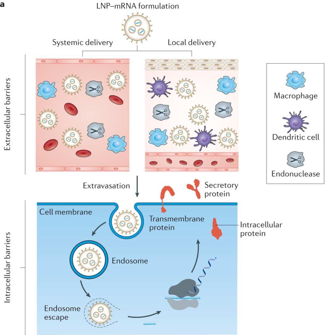 [2]  Hou, Xucheng, et al. "Lipid nanoparticles for mRNA delivery." Nature Reviews Materials 6.12 (2021): 1078-1094.