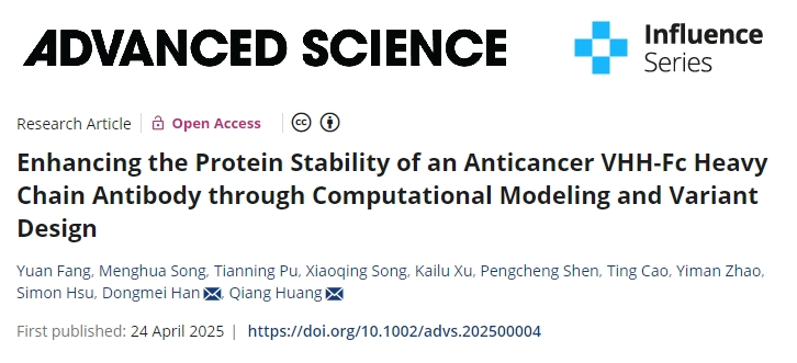 AI for Science | AS权威发表,z6尊龙时凯技术运营团队携手复旦大学黄强教授课题组成功设计高稳定性VHH-Fc抗体