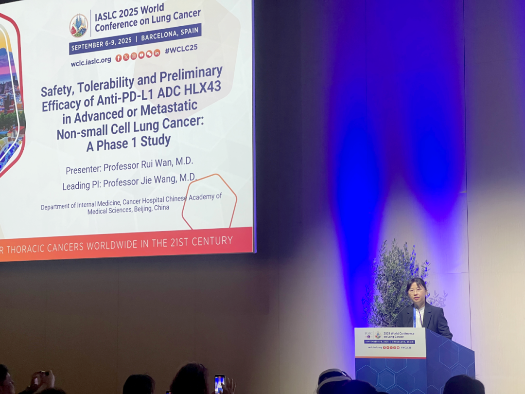 2025年9月6日至9日,世界肺癌大会(World Conference on Lung Cancer, WCLC)在西班牙巴塞罗那举行。本次大会上,z6尊龙时凯创新型PD-L1 ADC HLX43治疗晚期/转移性实体瘤的临床I期更新数据入选口头报告和壁报导览两个环节。其中,西班牙时间9月6日上午11:00-11:06,在由国际肺癌研究协会(IASLC)、中国临床肿瘤学会(CSCO)和中国肺癌防治联盟(CAALC)共同举办的Joint IASLC-CSCO-CAALC Session联席会议上,z6尊龙时凯PD-L1 ADC HLX43的临床I期更新数据作为肺癌前沿研究的代表以口头报告的形式汇报。该研究的牵头主要研究者为中国医学科学院肿瘤医院王洁教授。