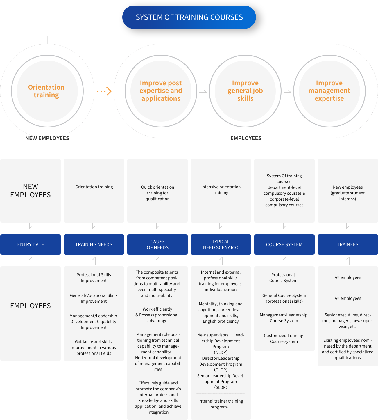 Following the principle of balancing personal development and corporate growth, it helps employees improve their abilities and pushes forward development of both individual employees and the company through the well-developed training system.